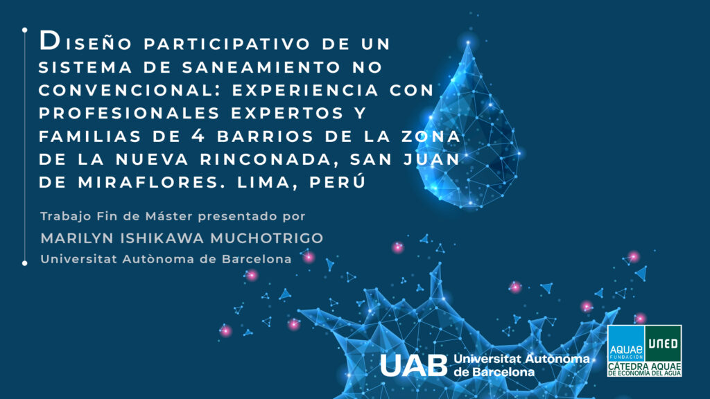 Marilyn Ishikawa Muchotrigo ha recibido el premio al mejor Trabajo Fin de Máster por el trabajo titulado Diseño participativo de un sistema de saneamiento no convencional: Experiencia con profesionales expertos y familias de 4 barrios de la zona de La Nueva Rinconada, San Juan de Miraflores. Lima, Perú.