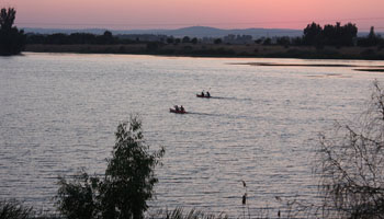 Foto: Una pareja de piraguas navega por el río Guadiana a su paso por Badajoz / Manuel CQ